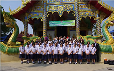当協会が行なっております『学資援助事業』とは、タイ(特に北部の農村地域)の恵まれない環境下にある女児達に、中学校入学から卒業までに必要な学資の一部を援助する事業です。始めたきっかけは、当協会がバンコクで『平和シンポジウム』と『原爆展』を開催し、結論が「平和の原点は人間の心の優しさである」との認識からでした。日本人の優しさと真心を学資援助という形でタイへ伝えようと、1994年よりこの事業を始めました。